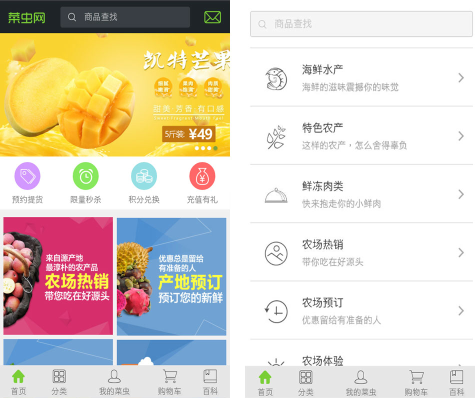 菜虫网是专业从事生鲜农产品销售的大型电子商务平台。网站主营水果、蔬菜、生鲜肉类、水产品及全国名优特农产品。